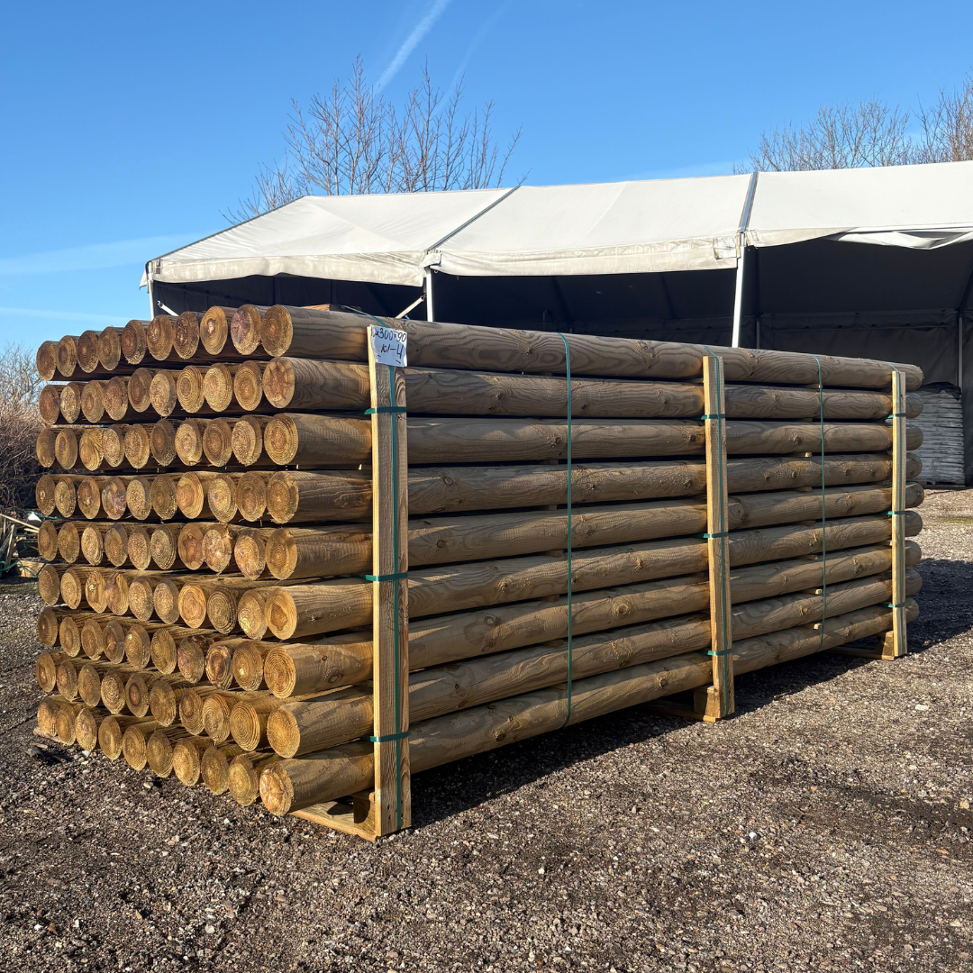 Pælen er fremstillet af drejet fyr og trykimprægneret uden arsen. Det sikrer høj kvalitet og lang holdbarhed – også under krævende forhold.