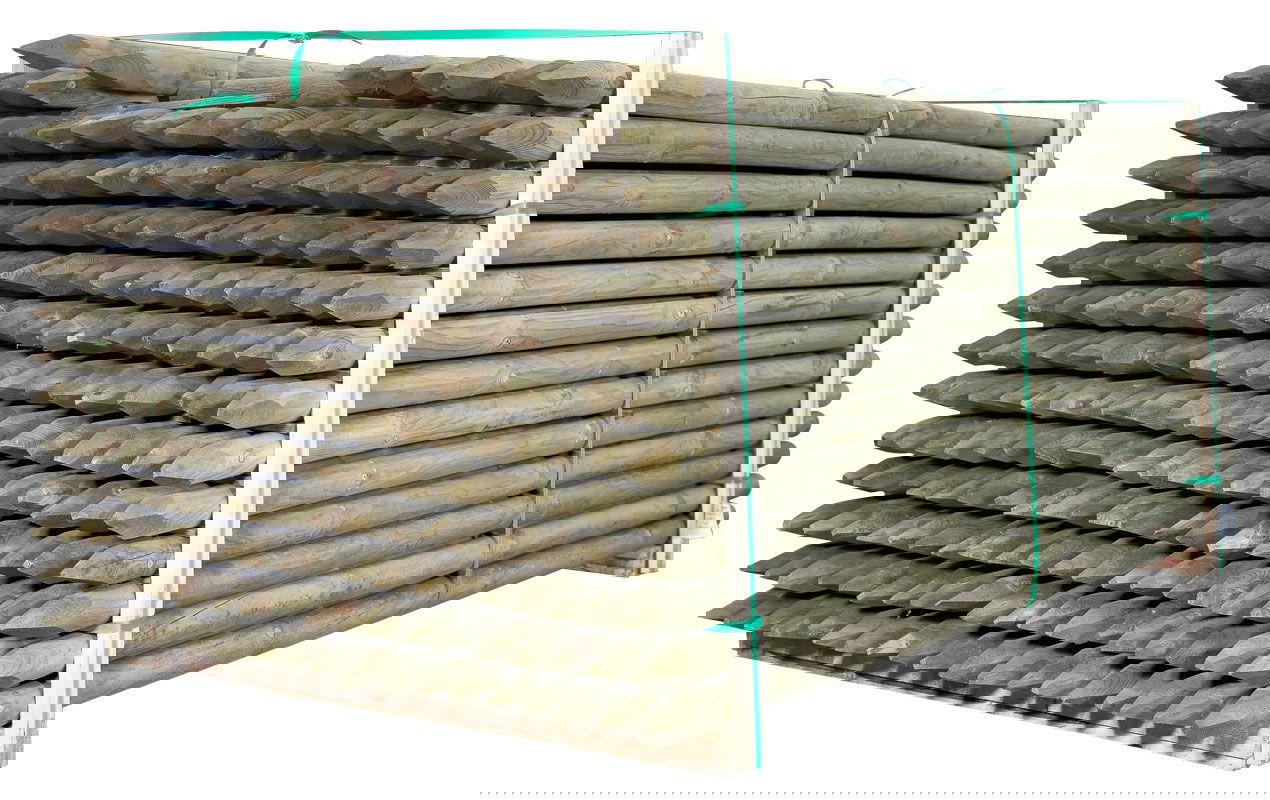 Pælen er fremstillet af drejet fyr og trykimprægneret uden arsen, hvilket sikrer høj kvalitet og lang levetid – selv under krævende forhold.
