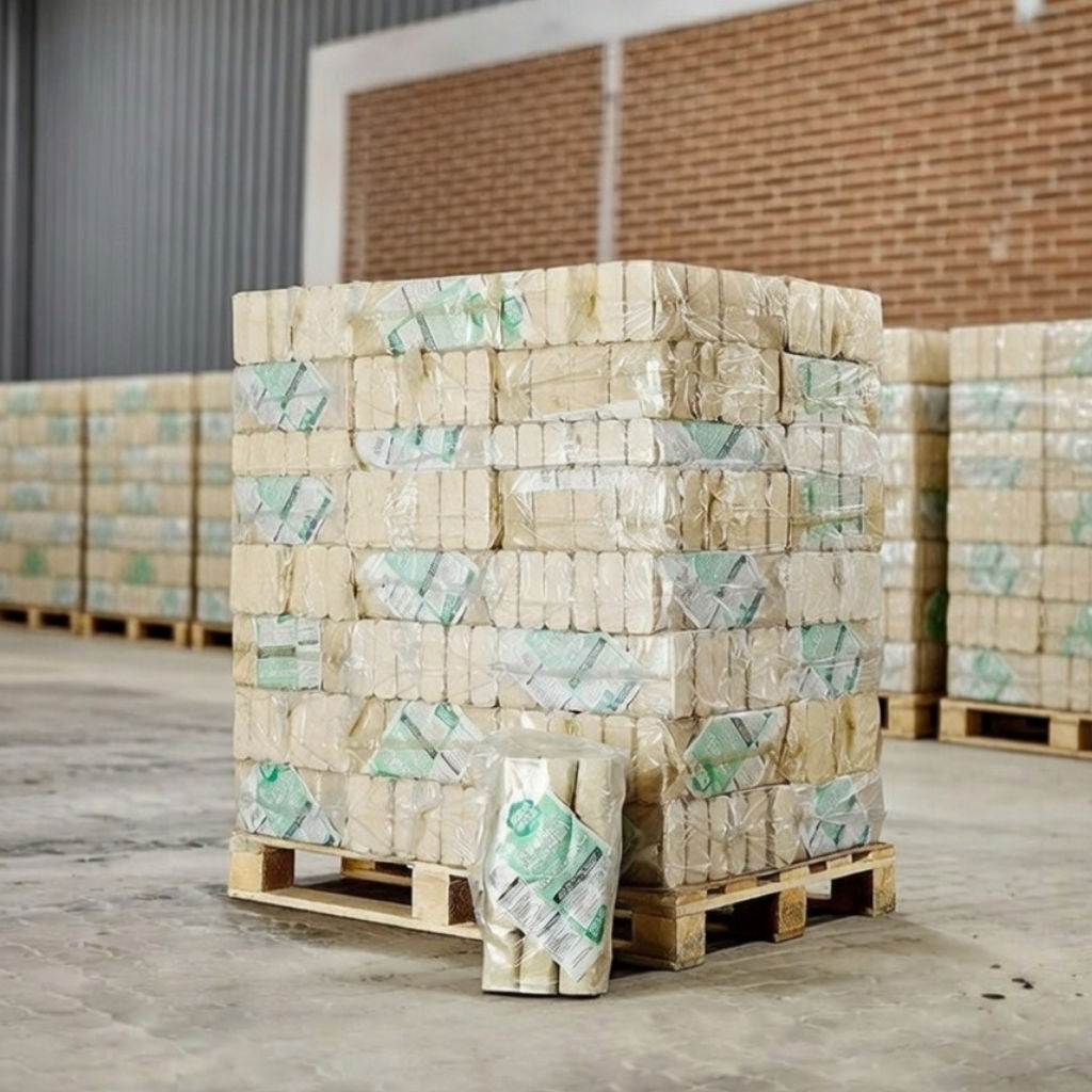 De lyse træbriketter er et 100% rent naturprodukt, som er lavet af træsmuld og spåner. Der er 12 briketter i hver pose og 960 kilo briketter på en palle ØKO-BRIK. Den praktiske størrelse gør briketterne lette at opbevare og perfekte til mindre brændeovne.