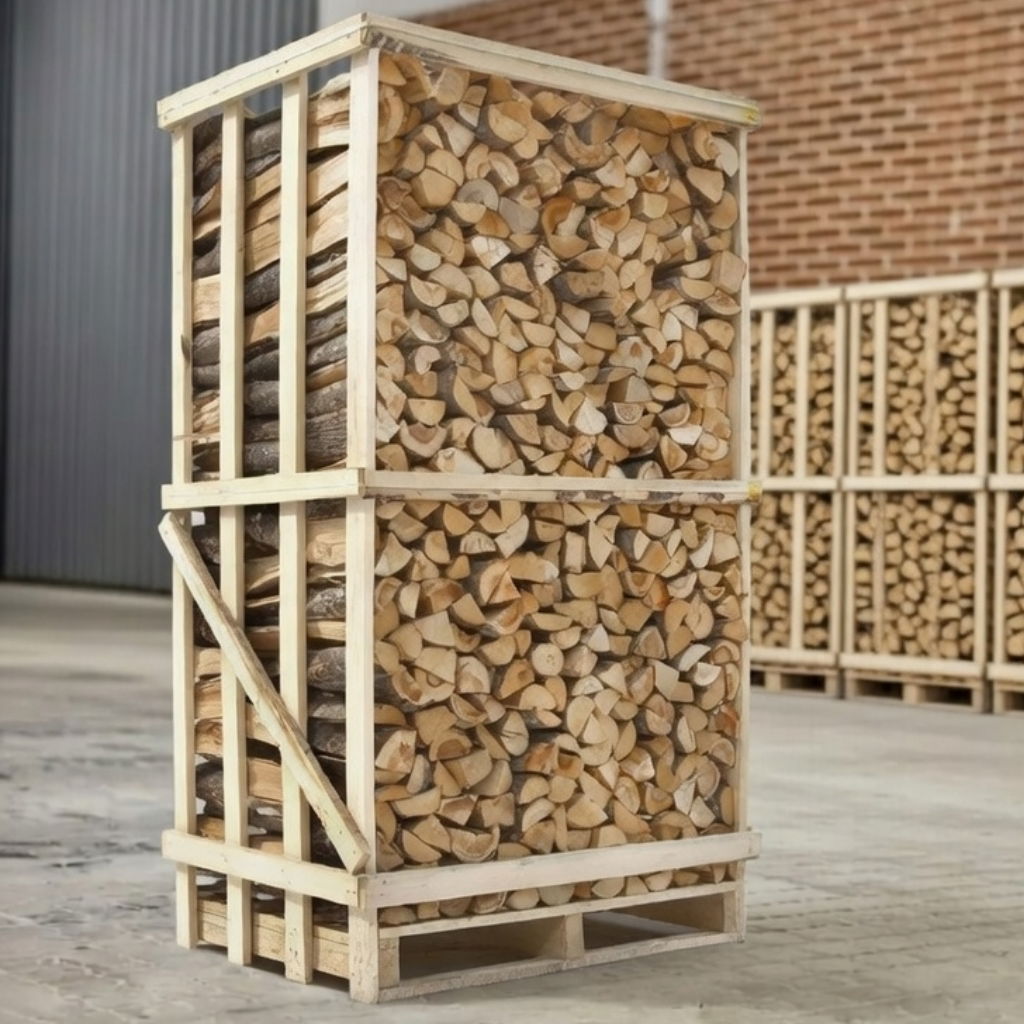 Brændet leveres i et engangs-brændetårn. Træet fra selve tårnet kan også brændes og er inkluderet i prisen.